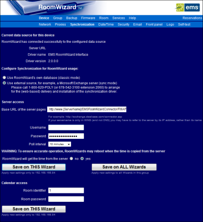 - If you have multiple RoomWizard units, you can click the Save on ALL Wizards button to use the above settings for all of your devices.